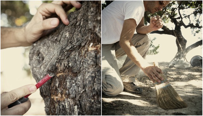 Γι’ αυτό οι τομές πρέπει να γίνονται προσεκτικά, ώστε να μην πληγώνεται άσκοπα το δέντρο. «Θέλει σεβασμό το κέντημα», λένε οι μαστιχοπαραγωγοί, γι’ αυτό και δεν εμπιστεύονται αυτή τη δουλειά σε εργάτες. Προτιμούν να «πληγώνουν» οι ίδιοι τα δέντρα τους.