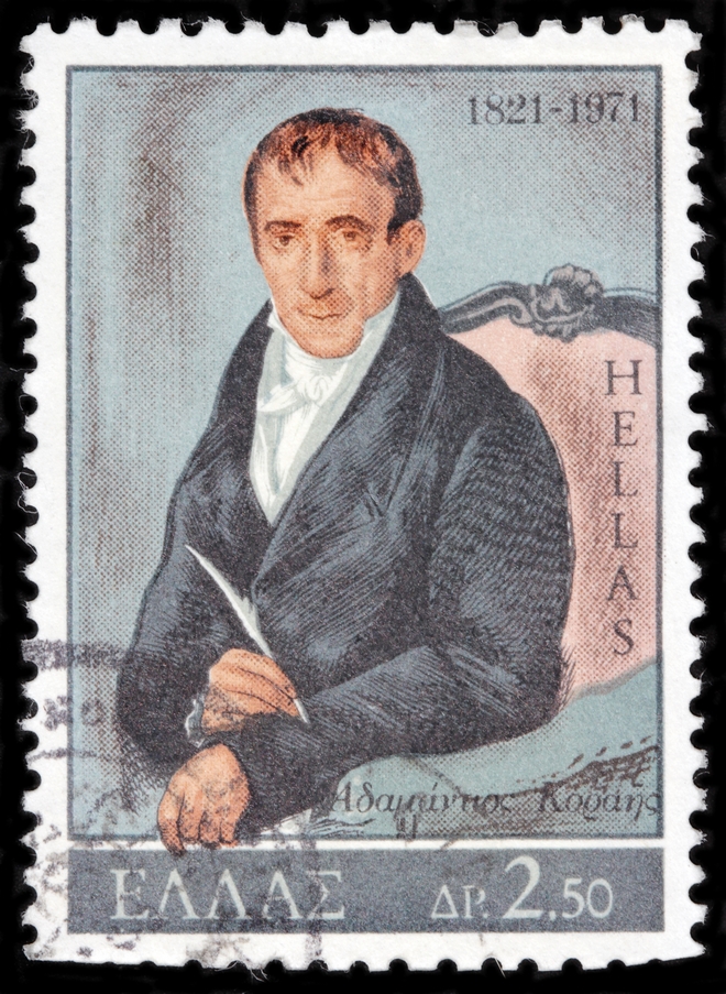 Αυτήν ακριβώς τη συνείδηση μεταφράζει ο Αδαμάντιος Κoραής στο Υπόμνημα περί της παρούσης καταστάσεως του πολιτισμού εν Ελλάδι (1803) απευθύνοντας ένα ξεκάθαρο μήνυμα τόσο στο γαλλικό όσο και στο ελληνικό κοινό.