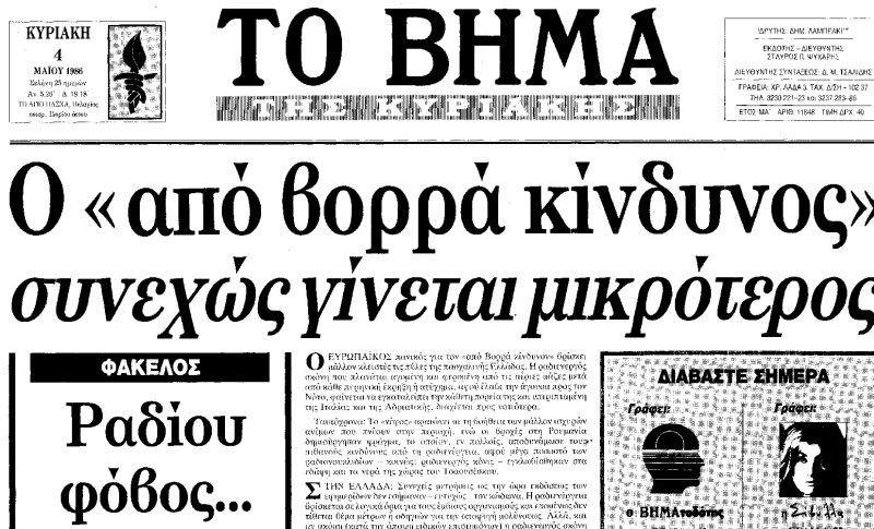 “Από το Καρπενήσι έως την Καρδίτσα, την Κατερίνη, το Κιλκίς, από τη Θεσσαλονίκη έως τη Χαλκιδική και τη Φλώρινα οι συγκεντρώσεις του -ραδιενεργού- καισίου φτάνουν ακόμα τα 65 κιλομπεκερέλ ανά τετραγωνικό μέτρο, όταν το όριο επικινδυνότητας, σύμφωνα με τους επιστήμονες, δεν ξεπερνά τα 5 κιλομπεκερέλ” έγραφε χαρακτηριστικά ο καθηγητής του ΕΜΠ, Σίμος Σιμόπουλος, σε έρευνα που δημοσίευαν τα Νέα την 1η Απριλίου του 2006.