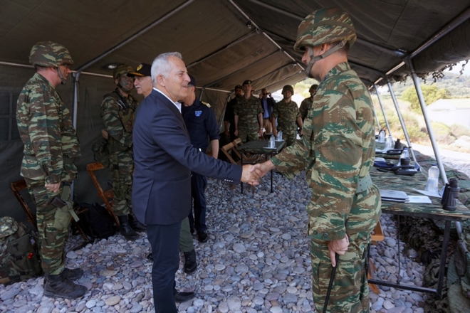 Ο υπουργός Εθνικής Άμυνας παρακολούθησε αποβατική ενέργεια στη Σάμο για την προενίσχυση της νήσου στα πλαίσια της άσκηση "Καταιγίς".