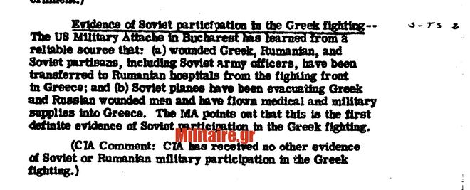 Όπως επισημαίνει το Militaire.gr, το έγγραφο της CIA αναφέρει: “αυτή είναι η πρώτη επιβεβαιωμένη ένδειξη της συμμετοχής της Σοβιετικής Ένωσης στις μάχες στην Ελλάδα”.