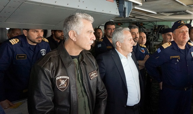 Από την φρεγάτα Ψαρά, ο υπουργός Εθνικής Άμυνας εξήρε την εξαιρετική απόδοση και προσπάθεια του προσωπικού του Πολεμικού Ναυτικού