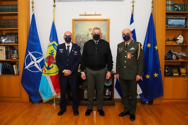 Ο αρχηγός ΓΕΕΘΑ, στρατηγός Κωνσταντίνος Φλώρος, δέχθηκε σήμερα, Τρίτη 15 Φεβρουαρίου, στο γραφείο του, τον διευθυντή της Διεύθυνσης Στρατηγικής του Γενικού Επιτελείου Ενόπλων Δυνάμεων του Ισραήλ υποπτέραρχο Tal Kelman και τον διευθυντή του Δ΄ Κλάδου του Γενικού Επιτελείου Εθνικής Φρουράς της Κύπρου συνταγματάρχη Νεόφυτο Παχουλίδη, οι οποίοι βρίσκονται στην Ελλάδα ως επικεφαλής των αντιπροσωπειών των χωρών τους στο πλαίσιο της υπογραφής του «Κοινού Σχεδίου Δράσης Ελλάδας – Κύπρου – Ισραήλ» για το 2022.