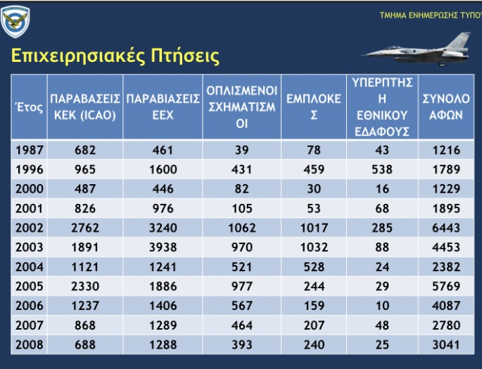 Ούτε ένα ούτε δύο, αλλά 52.225 αεροσκάφη των Τούρκων έχουν αντιμετωπιστεί από τα μαχητικά αεροσκάφη της Πολεμικής Αεροπορίας, από το 1987, μέχρι και τον Σεπτέμβριο!