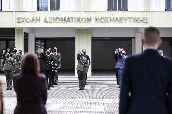 Τελετή ορκωμοσίας των νέων Αξιωματικών Νοσηλευτικής τάξεως 2020, παρουσία της Προέδρου της Δημοκρατίας ΚΑτερίνας Σακελλαροπούλου Eurokinissi