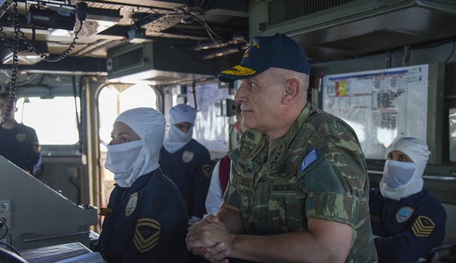 Ο Αρχηγός ΓΕΕΘΑ Στρατηγός Κωνσταντίνος Φλώρος συνοδευόμενος από τον Αρχηγό ΓΕΝ Αντιναύαρχο Στυλιανό Πετράκη ΠΝ και τον Αρχηγό Στόλου Αντιναύαρχο Παναγιώτη Λυμπέρη ΠΝ, επιβιβάστηκε στη φρεγάτα “Αιγαίον” από την οποία παρακολούθησε διακλαδικές επιχειρησιακές δραστηριότητες στο πλαίσιο της τελικής φάσης επιχειρησιακής εκπαίδευσης μονάδων και των τριών Κλάδων των Ενόπλων Δυνάμεων.