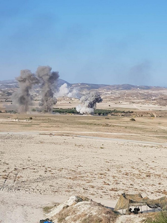 Τα ελληνικά μαχητικά έπληξαν επίγειους στόχους με πραγματικά πυρά στο πεδίο βολής του Καλού Χωριού Λάρνακας στο πλαίσιο της άσκησης "Ατσάλινο Βέλος".