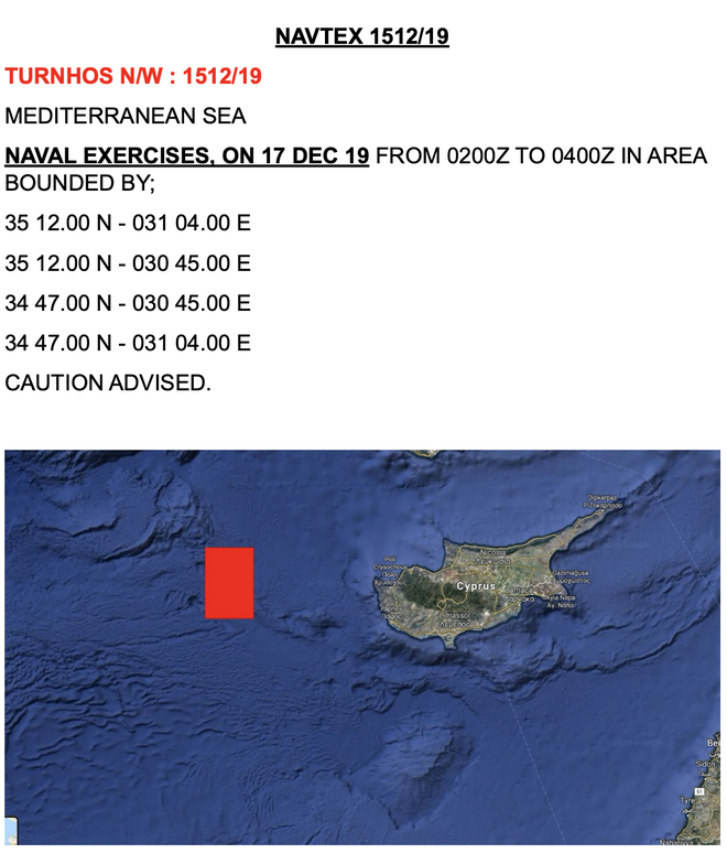 Δέσμευσαν επίσης περιοχή ΒΑ της Ρόδου και Δυτικά της Κύπρου, όπως γράφει το militaire.gr.