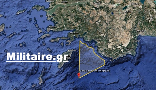 Σύμφωνα με το Militaire.gr, η περιοχή είναι μεταξύ Ρόδου και Καστελόριζου. Πολύ κοντά στο Καστελόριζο, όπως φαίνεται στον χάρτη.