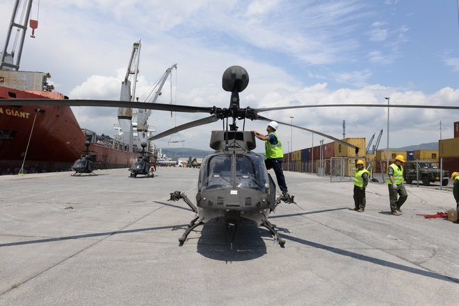 Στο λιμάνι του Βόλου έφτασαν την Πέμπτη με το φορτηγό πλοίο “Ocean Giant” τα 70 αμερικανικά ελικόπτερα OH-58D Kiowa Warrior καθώς και ένα ελικόπτερο CH – 47 Chinook που εντάσσονται άμεσα στο στόλο της Αεροπορίας Στρατού, ανεβάζοντας κατακόρυφα τις επιχειρησιακές της δυνατότητες.
