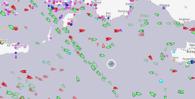 Η θέση του Oruc Reis φαίνεται στην παραπάνω εικόνα, καθώς το απόγευμα της Δευτέρας άνοιξε τον πομπό που είχε κλείσει αφού απέπλευσε από την Αττάλεια.