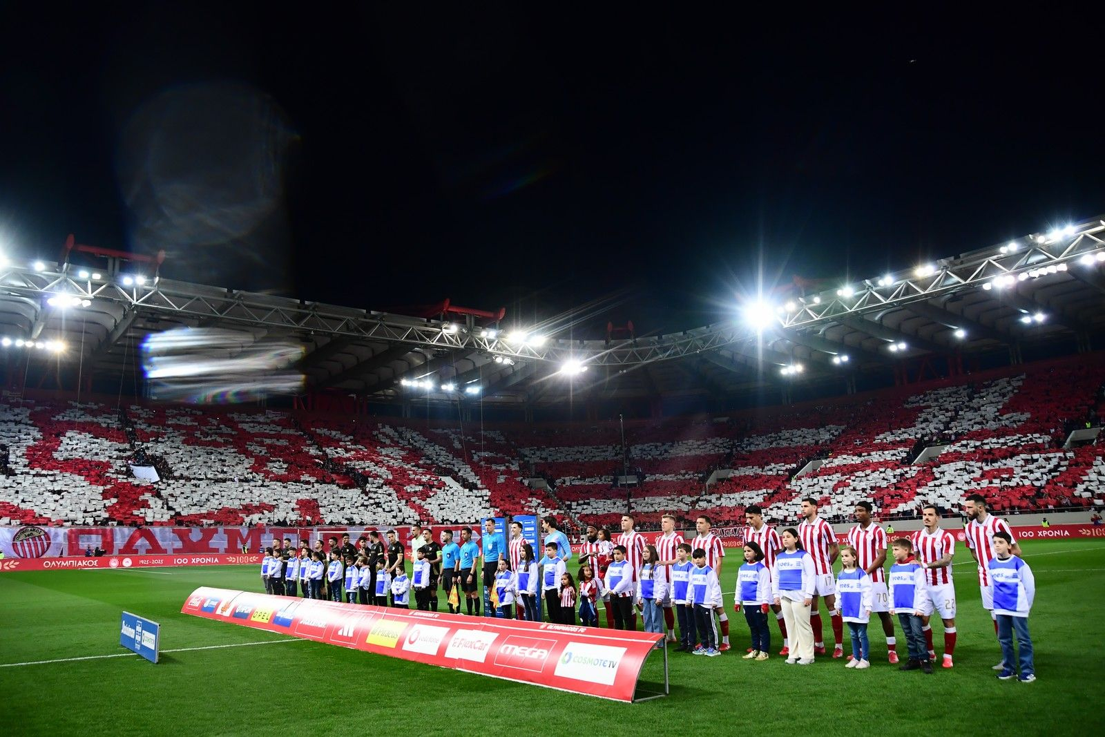 Στο “Γ. Καραϊσκάκης” δεν υπήρχε ούτε μία θέση κενή και σε αυτό βοήθησε η προτροπή της ΠΑΕ για μεταβίβαση των διαρκείας. Οι φίλοι του συλλόγου, λοιπόν, υποδέχθηκαν τους ποδοσφαιριστές των δύο ομάδων με ένα εντυπωσιακό κορεό, το οποίο κάλυπτε ολόκληρο το φαληρικό γήπεδο.