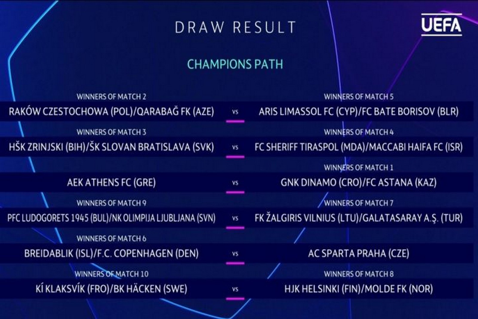 Με τη νικήτρια του ζευγαριού Ντίναμο Ζάγκρεμπ - Αστάνα θα μονομαχήσει η ΑΕΚ για μία θέση στα playoffs του Champions League, όπως προέκυψε από την κλήρωση που διενεργήθηκε το μεσημέρι της Δευτέρας στα γραφεία της UEFA.