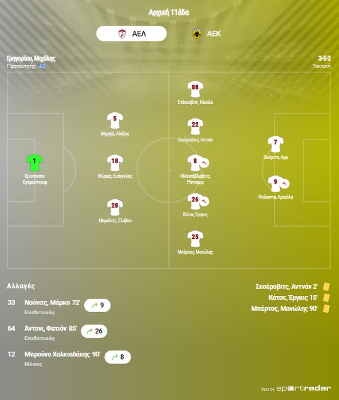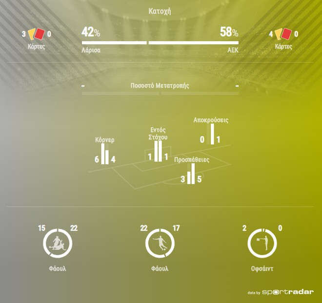 Στο 83ο λεπτό η ΑΕΚ θα μπορούσε ν’ αποδράσει με το διπλά, αλλά δεν… Ο Μάνταλος σούταρε από το πλάι, η μπάλα μετά από τις κόντρες κατέληξε στον Λιβάγια ο οποίος όμως ξαφνιάστηκε και βρίσκοντας τη στρογγυλή θεά με το γόνατο επέτρεψε στον έμπειρο Μόρα να σώσει την ομάδα του πάνω στη γραμμή. Με το 0-0, λοιπόν, η ΑΕΚ συνεχίζει με δεύτερη σερί ισοπαλία, ενώ η ΑΕΛ γιορτάζει που πήρε βαθμό από έναν ακόμα μεγάλο της Super League 1.