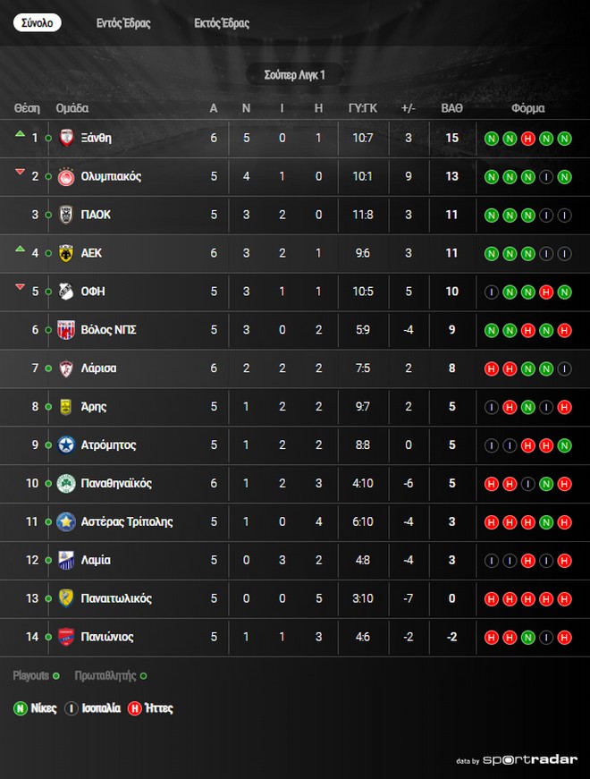Η ΒΑΘΜΟΛΟΓΙΑ ΤΗΣ SUPER LEAGUE 1
