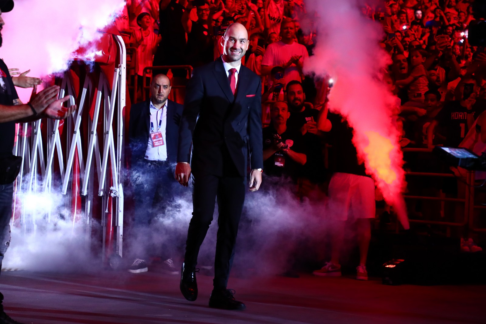 Ανατριχίλα στο Στάδιο Ειρήνης και Φιλίας με τον Βασίλη Σπανούλη να κάνει την είσοδό του στο παρκέ και να αποθεώνεται από τους χιλιάδες κόσμου που βρέθηκαν στο γήπεδο.