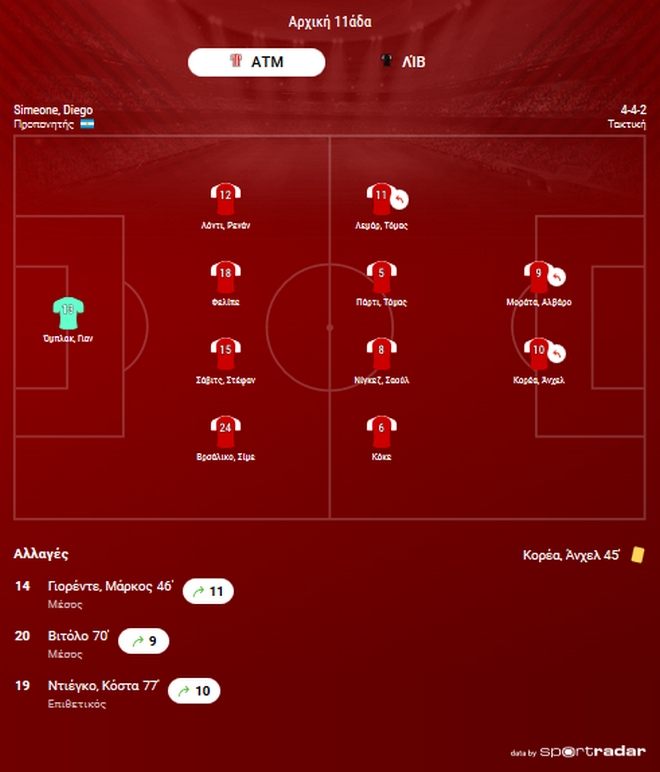 Μία πεισμωμένη και ψυχωμένη Ατλέτικο άφησε στην άκρη την κακή αγωνιστική κατάσταση στην οποία βρίσκεται το τελευταίο διάστημα και όχι μόνο κοίταξε στα μάτια την πρωταθλήτρια Ευρώπης, που είναι αχτύπητη τη φετινή σεζόν στην Premier League με 25 νίκες και 1 ισοπαλία, αλλά την έριξε στο καναβάτσο.