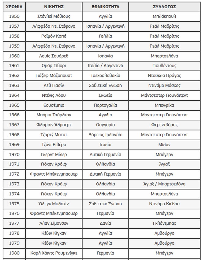 ΟΙ “ΧΡΥΣΟΙ” ΝΙΚΗΤΕΣ ΑΠΟ ΤΟ 1956 ΜΕΧΡΙ ΣΗΜΕΡΑ: