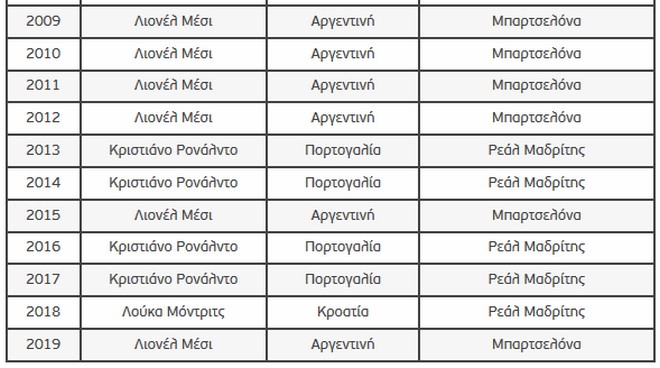 Ο Λιονέλ Μέσι για έκτη φορά στην καριέρα του, πρώτη μετά το 2015, κατέκτησε και πάλι τη χρυσή μπάλα και έγινε ο παίκτης με τις περισσότερες κατακτήσεις ξεπερνώντας τον Κριστιάνο Ρονάλντο.