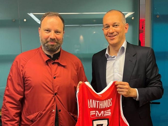 Γιώργος και Παναγιώτης Αγγελόπουλος υποδέχθηκαν την Έμα Στόουν και τον Γιώργο Λάνθιμο στο ΣΕΦ και τους έδωσαν και από μία φανέλα με το όνομά τους, με το νούμερο 7 στην πλάτη.