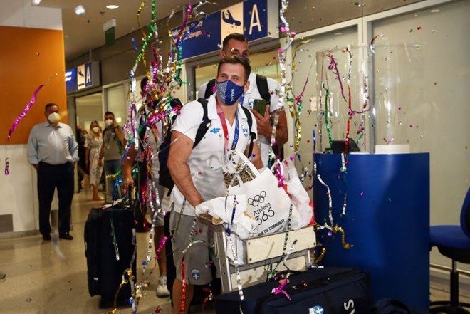 Η Εθνική ομάδα πόλο Ανδρών που κατέκτησε το ασημένιο μετάλλιο στους Ολυμπιακούς Αγώνες του Τόκιο επέστρεψε στην Ελλάδα λίγο μετά τις 12:30 (11/8), με τους παίκτες να εμφανίζονται με τα μετάλλια στο στήθος και να γνωρίζουν αποθεωτική υποδοχή.