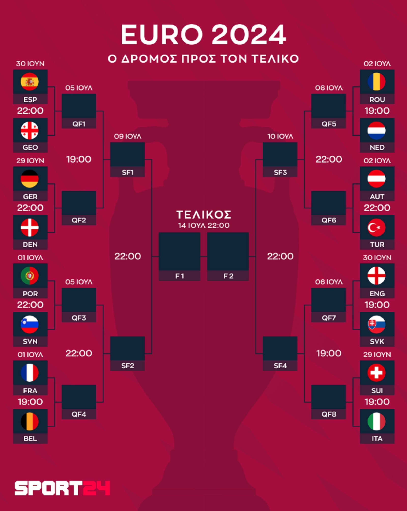 Euro 2024: Το πρόγραμμα των αγώνων του Σαββάτου 29/6