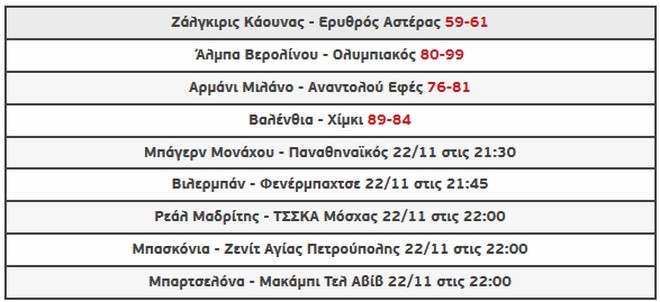 Στο ματς που άνοιξε το πρόγραμμα της 10ης αγωνιστικής, ο Ερυθρός Αστέρας νίκησε τη Ζάλγκιρις στο Κάουνας σε έναν αγώνα που δεν είχε θέαμα, ενώ το μενού της Πέμπτης έκλεισε με τις αναμετρήσεις Αρμάνι Μιλάνο – Αναντολού Εφές και Βαλένθια – Χίμκι. Στην Ιταλία ο Τίμπορ Πλάις σκέπασε τα καλάθια για την τέταρτη σερί νίκη της Εφές, ενώ στην Ισπανία η ομάδα του Χάουμε Πονσαρνάου πήρε την τέταρτη νίκη της στα τελευταία πέντε ματς.