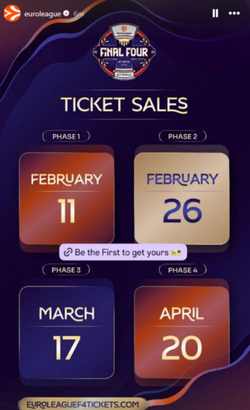 Η EuroLeague ανακοίνωσε την ημερομηνία που θα κυκλοφορήσουν τα εισιτήρια για το Final Four 2026 που θα γίνει στο Telekom Center Athens.