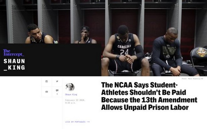 Έχει εξελίξει σε δεδομένο πως οι φοιτητές/αθλητές εργάζονται ως σκλάβοι και ως εκ τούτου δεν δικαιούνται μισθού. Το κείμενο του “The Intercept” καταλήγει στο “η μισαλλοδοξία αποκαλύπτεται πάντα, με τον έναν ή τον άλλον τρόπο. Και αυτό είναι ό,τι ακριβώς κάνει το NCAA, με τη στήριξη δεδικασμένου που αφορά φυλακισμένο-, ώστε να αρνηθεί τους μισθούς στους φοιτητές/αθλητές. Σίγουρα έχει αποκαλυφθεί σε εμάς”.