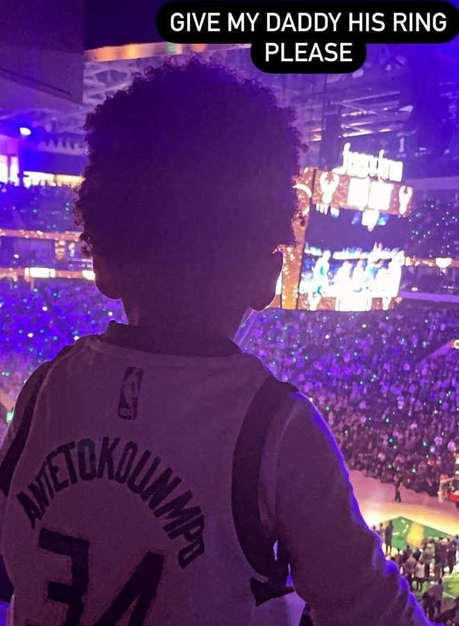 Η σύντροφος του Γιάννη Αντετοκούνμπο, Μαράια, βρέθηκε στο Fiserv Forum για να τον αγώνα με τους Νετς και κατά την διάρκεια της τελετής παράδοσης των δαχτυλιδιών ανέβασε μία υπέροχη φωτογραφία του μεγάλου τους γιου, Λίαμ, να παρακολουθεί τι συνέβαινε.