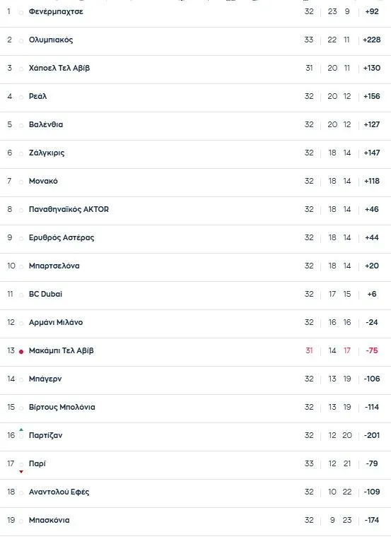 Χαμός για την έκτη θέση της κανονικής περιόδου, με πέντε ομάδες στο 18-14 μετά από την νίκη του Παναθηναϊκού επί του Ερυθρού Αστέρα.