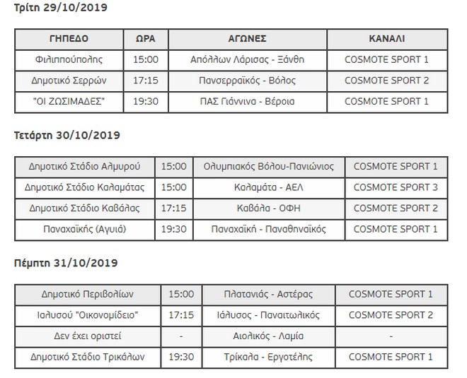 Μάλιστα έγινε γνωστό και το πρόγραμμα και τα κανάλια που θα μεταδώσουν το κάθε παιχνίδι που θα διεξαχθεί το τριήμερο 29-30 και 31 Οκτωβρίου.