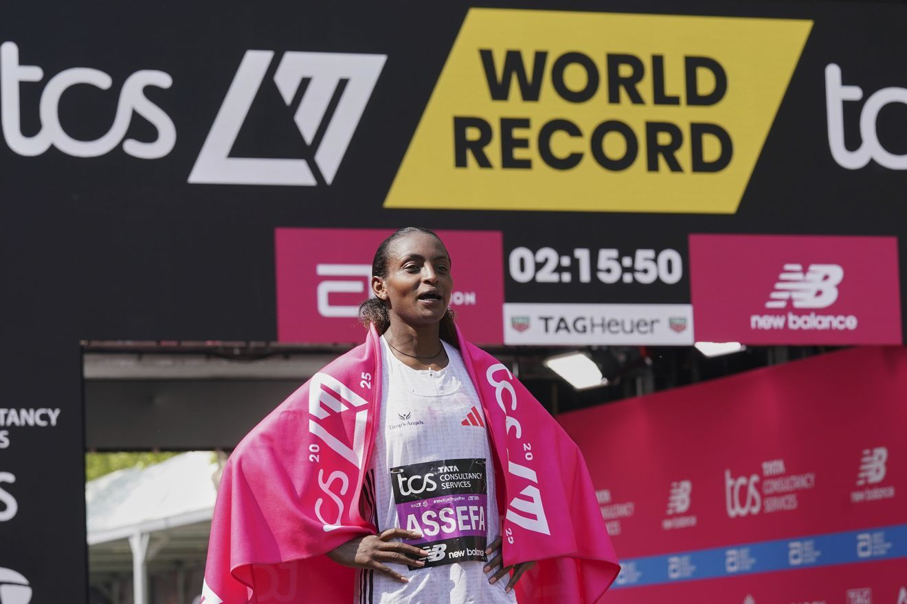 Η Tigst Assefa έχοντας κάνει παγκόσμιο γυναικείο ρεκόρ 2025 Alberto Pezzali/AP Photo