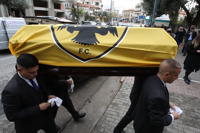 Η ταφή του θα γίνει στις 16:30 στο Δημοτικό Κοιμητήριο Μαρκοπούλου Μεσογαίας και όλα τα έξοδα έχει αναλάβει η ΠΑΕ ΑΕΚ.