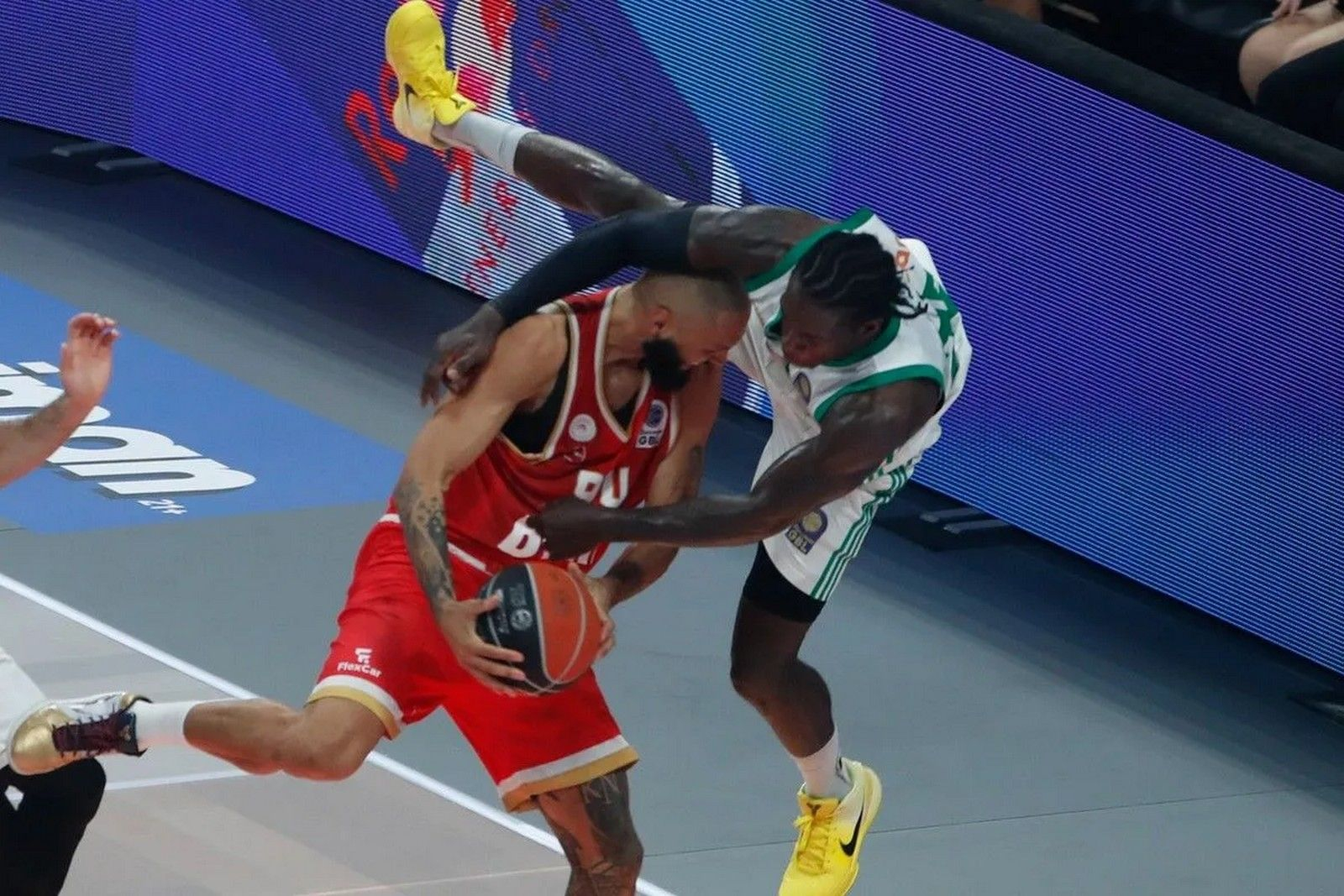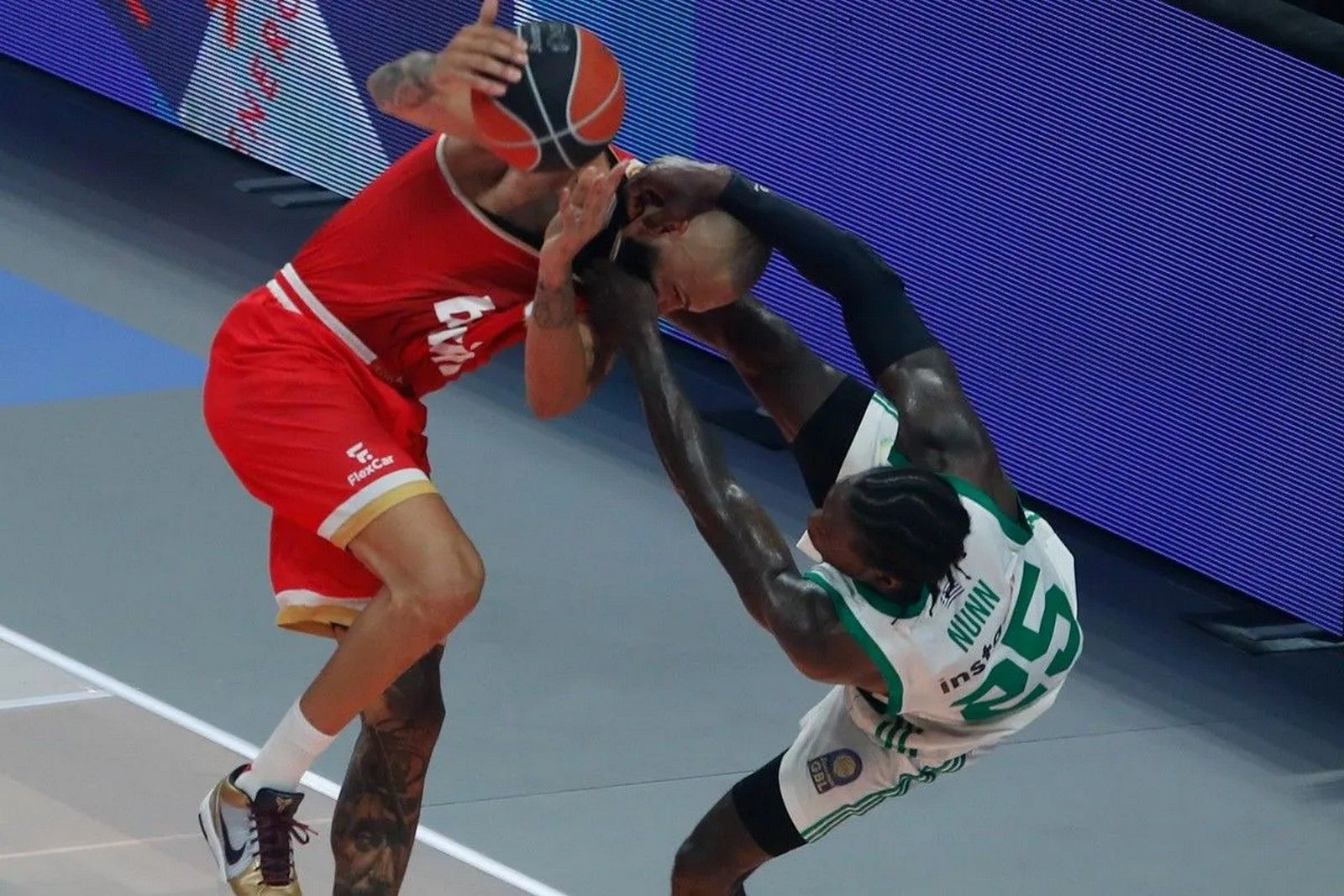 Ο άνθρωπος που έκανε κωλοδάχτυλο στους φιλάθλους του Ολυμπιακού μέσα στο ΣΕΦ στον τελευταίο εντός έδρας αγώνα των δυο ομάδων στην Ευρωλίγκα, χτυπούσε ύπουλα τους παίκτες του Ολυμπιακού σ’ όλη τη διάρκεια του αγώνα.