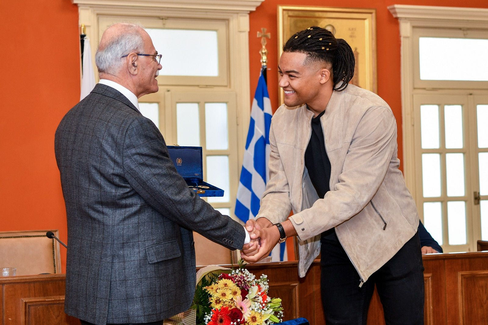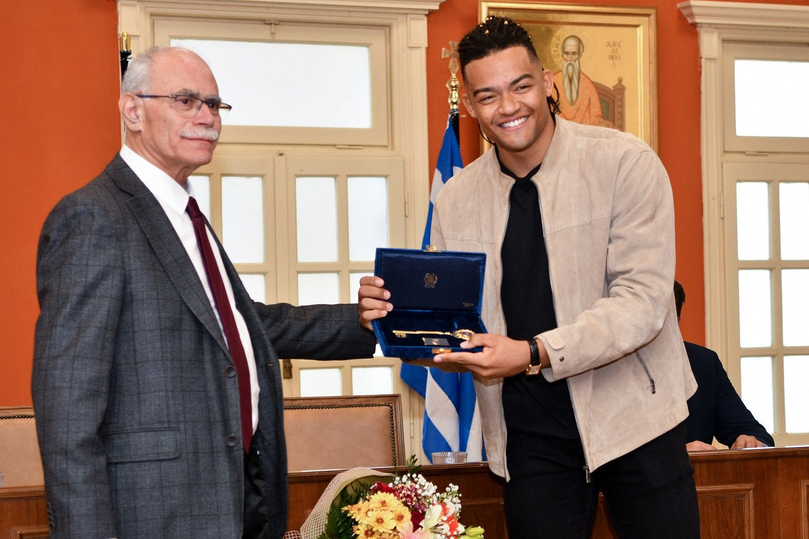 Ο δήμαρχος Πύργου απένειμε το “χρυσό κλειδί” της πόλης στον Ολυμπιονίκη, Εμμανουήλ Καραλή.
