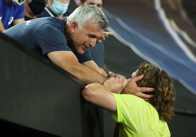 Ο Ελληνας τενίστας στράφηκε προς τους δικούς του ανθρώπους στην εξέδρα και με το χαμόγελο της ευτυχίας αποτύπωσε το μέγεθος της ικανοποίησής του.