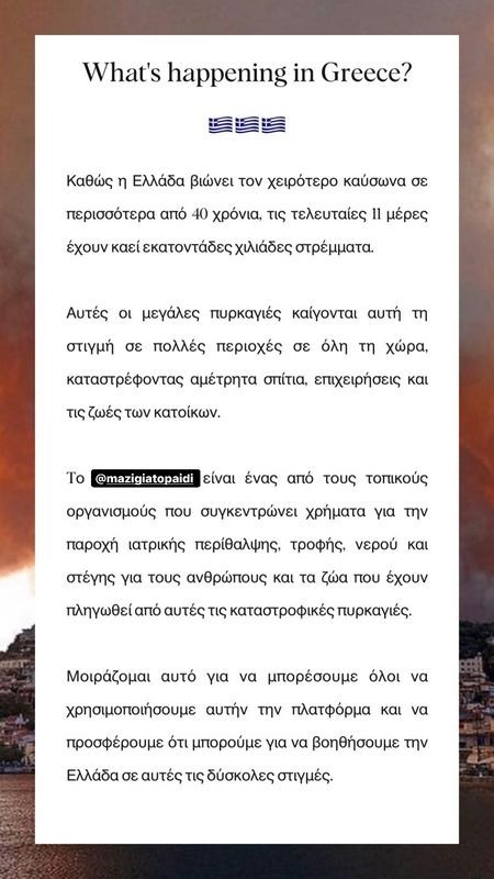 Μοιράζομαι αυτό για να μπορέσουμε όλοι να χρησιμοποιήσουμε αυτή την πλατφόρμα και να προσφέρουμε ό,τι μπορούμε για να βοηθήσουμε την Ελλάδα σε αυτές τις δύσκολες στιγμές”, αναφέρει χαρακτηριστικά στο μήνυμά του.