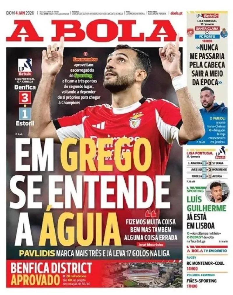 Ο Βαγγέλης Παυλίδης βρέθηκε για άλλη μια φορά στο πρωτοσέλιδο της A Bola, ύστερα από το χατ-τρικ που σημείωσε για την Μπενφίκα κόντρα στην Εστορίλ.