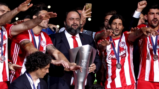 “Η Ελλάδα γιορτάζει για τον Θρύλο της. Ο Πειραιάς γιορτάζει για το καμάρι του, που έφτασε τα 44 πρωταθλήματα όταν όλες οι άλλες ομάδες μαζί μετρούν 37! Οι Έλληνες γιορτάζουν το 7ο συνεχόμενο πρωτάθλημα του Ολυμπιακού. Ένα ρεκόρ μυθικό, μόνο ο Ολυμπιακός μπορεί να κάνει και άλλοι δεν μπορούν ούτε καν να ονειρευτούν. Με τα έξι συνεχόμενα πρωταθλήματα ο Ολυμπιακός ονομάστηκε ΘΡΥΛΟΣ, στη συνέχεια πήρε 7 συνεχόμενα πρωταθλήματα, ρεκόρ που έμοιαζε ότι θα μείνει ακατάρριπτο στους αιώνες. Όμως απόψε γιορτάζουμε ξανά έναν παγκόσμιο ποδοσφαιρικό άθλο. Επτά συνεχόμενα πρωταθλήματα κόντρα σε όλους και σε όλα. Με ψυχή, πίστη, πάθος, ενέργεια, ακατάπαυστη δουλειά, ο Ολυμπιακός γιορτάζει το 44ο πρωτάθλημα, το 7ο συνεχόμενο. Γιορτάζουμε τη μόνιμη παρουσία του Ολυμπιακού στο κλειστό κλαμπ των 25 καλύτερων της Ευρώπης”, ανέφερε μεταξύ άλλων το μήνυμα του Βαγγέλη Μαρινάκη.