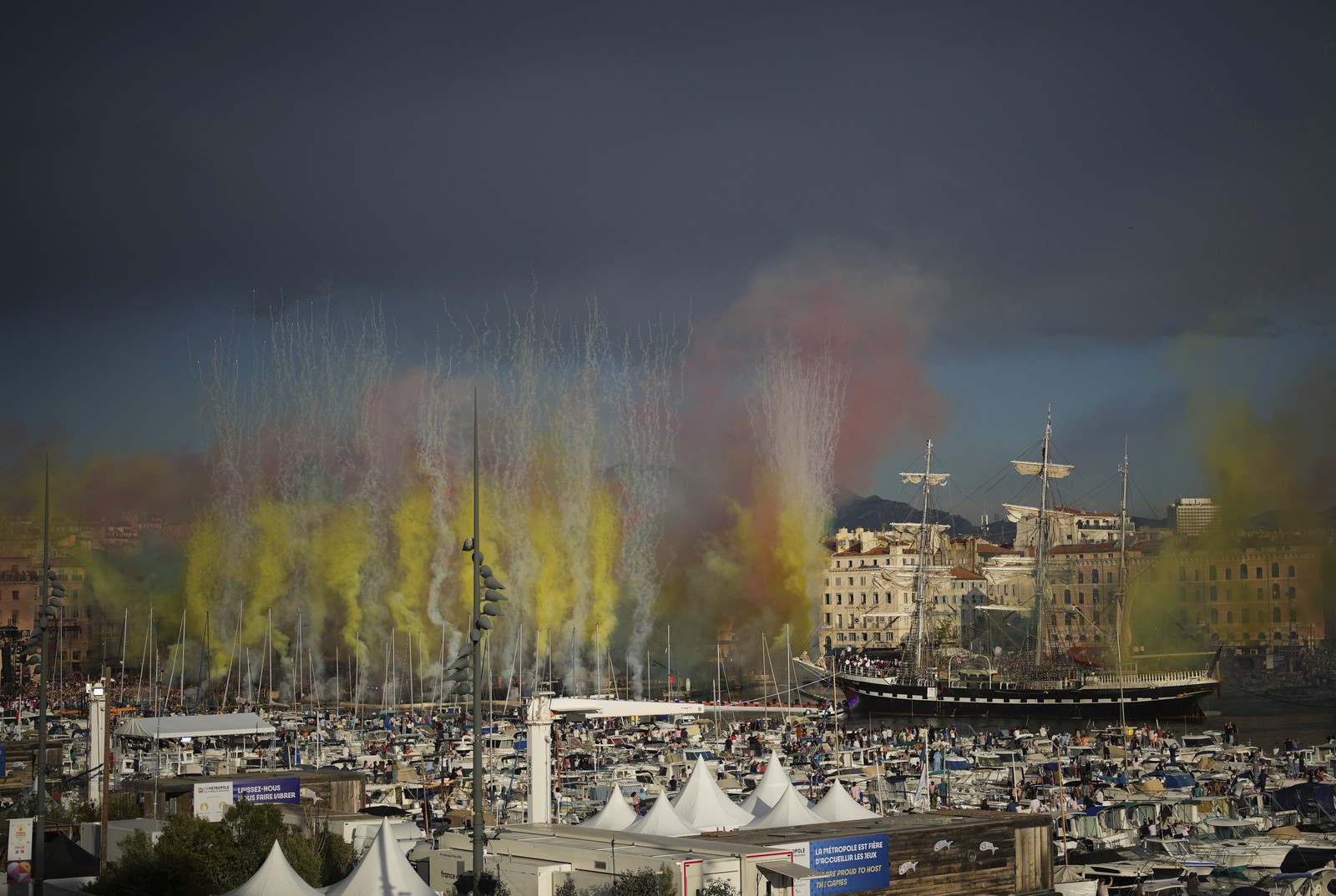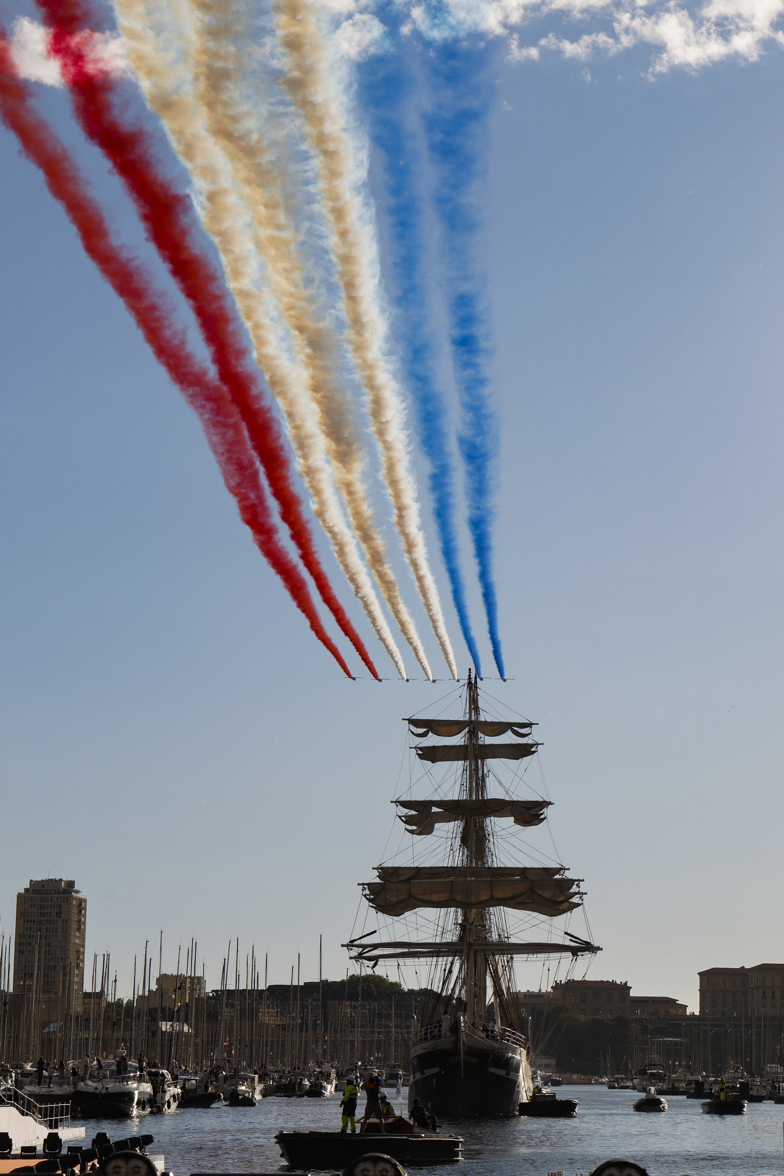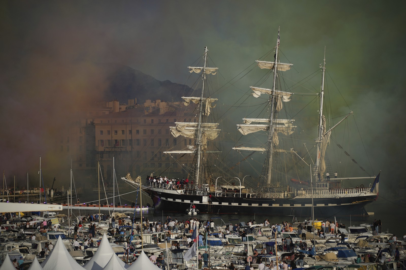 Πλήθος κόσμου έδωσε το “παρών”, παρακολουθώντας την εντυπωσιακή τελετή, στην οποία περισσότερα από χίλια σκάφη συνόδευαν την «παρέλαση» του Belem γύρω από τον κόλπο της Μασσαλίας.