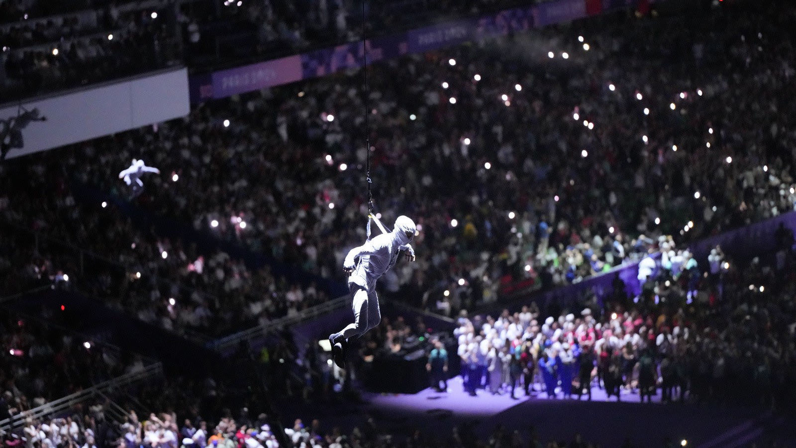 Σε άλλο σημείο της Τελετής Λήξης, το άγαλμα της Νίκης της Σαμοθράκης δέσποζε σε κεντρική θέση στο Stade de France: