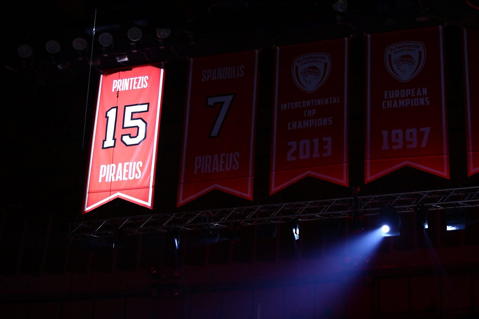 Η μεγάλη στιγμή που η φανέλα του Γιώργου Πρίντεζη παίρνει τη θέση της στον ουρανό του Σταδίου Ειρήνης και Φιλίας.