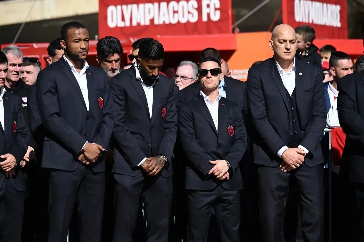 Ολυμπιακός: Η ομάδα ποδοσφαίρου στο μνημόσυνο για τα θύματα της Θύρας 7