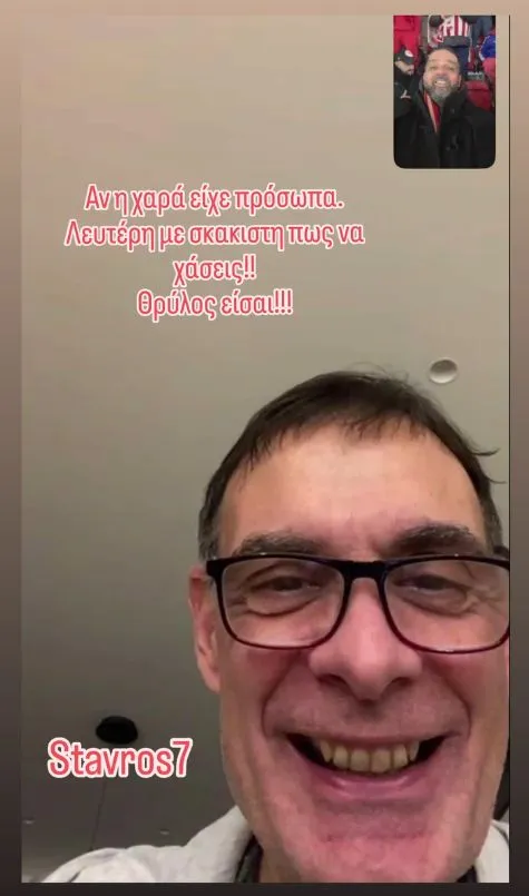Ο Γιώργος Μπαρτζώκας βρέθηκε στη Johan Cruyff Arena με βιντεοκλήση, στη βραδιά της πρόκρισης του ποδοσφαιρικού Ολυμπιακού στο Άμστερνταμ επί του Άγιαξ για το Champions League.