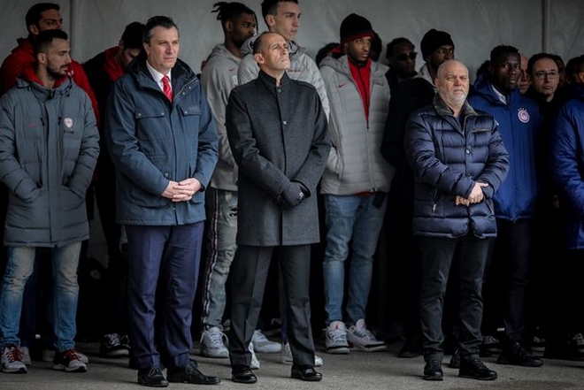 Όλοι οι εκπρόσωποι του Ολυμπιακού ήταν παρόντες. Ο ιδιοκτήτης της “ερυθρόλευκης” ΠΑΕ, Βαγγέλης Μαρινάκης, οι ισχυροί άνδρες της ΚΑΕ, Γιώργος και Παναγιώτης Αγγελόπουλος, όσο και οι παίκτες των τμημάτων ποδοσφαίρου, μπάσκετ, άλλων αθλημάτων και του Ερασιτέχνη.