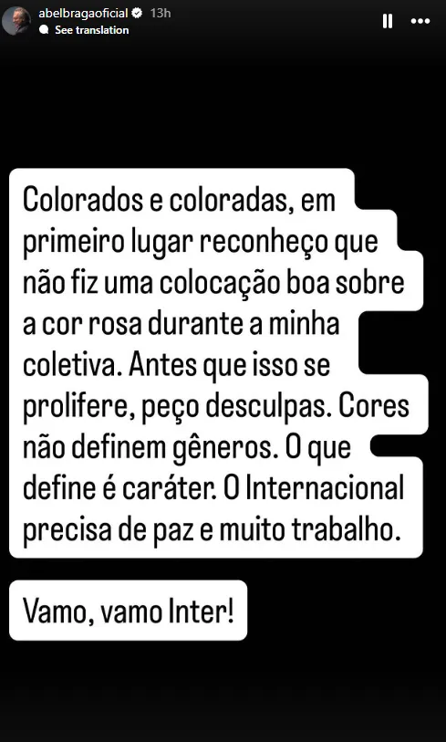 Όπως εύκολα καταλαβαίνει κανείς, οι παίκτες της Ιντερνασιονάλ αγωνίζονται φορώντας ροζ φανέλες, κάτι που κατά τον προπονητή της, τους κάνει “αδερφές”. Ότι το ροζ χρώμα χαρακτηρίζει τη σεξουαλικότητα κάποιου, θεωρείται λυμένο το 2025 απλά λογικά η πληροφορία δεν έχει φτάσει στα αυτιά του Μπράγκα. Πολλώ δε μάλλον ότι οι γκέι έχουν δικαίωμα να παίζουν ποδόσφαιρο! Θου κύριε.