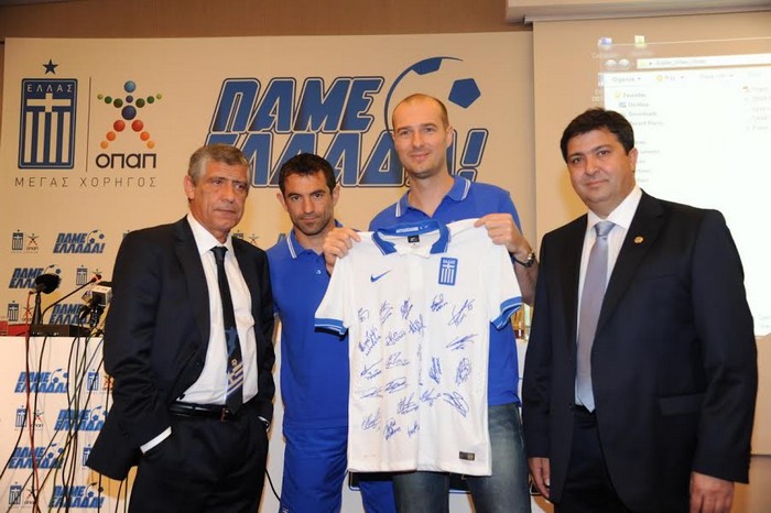 Στο πλαίσιο της παρουσίασης, ο κ. Petr Matejovsky, CMO της ΟΠΑΠ, ο Αναπληρωτής Πρόεδρος της ΕΠΟ, κ. Ιωάννης Παπακωνσταντίνου, ο προπονητής της Εθνικής Ομάδας, Φερνάντο Σάντος και ο Αρχηγός της Ομάδας, Γιώργος Καραγκούνης, απηύθυναν σύντομους χαιρετισμούς, ενώ η εκδήλωση έκλεισε σε πανηγυρικό κλίμα με την αίθουσα να σείεται από το τραγούδι του συνθήματος! Μέσα σε πανηγυρισμούς και χειροκροτήματα, η Ομάδα κατευθύνθηκε προς το Αεροδρόμιο συνοδευόμενη από τις ευχές όλων για καλή τύχη.