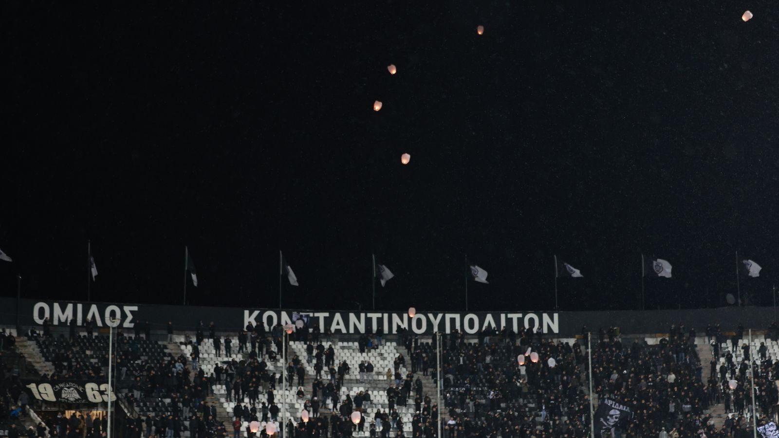 ΠΑΟΚ – Αστέρας Τρίπολης: 57 φαναράκια στον ουρανό της Τούμπας για τα θύματα των Τεμπών