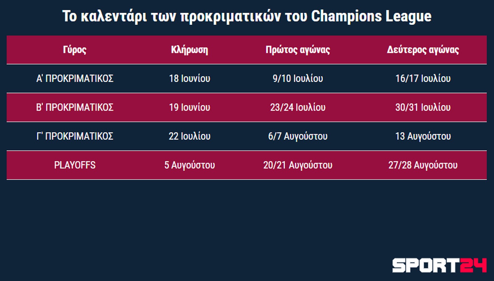 Οι ασπρόμαυροι θα εκκινήσουν το ταξίδι τους από το διήμερο 23/24 Ιουλίου, με τις ρεβάνς να είναι προγραμματισμένες μία εβδομάδα αργότερα και συγκεκριμένα στις 30/31 Ιουλίου.